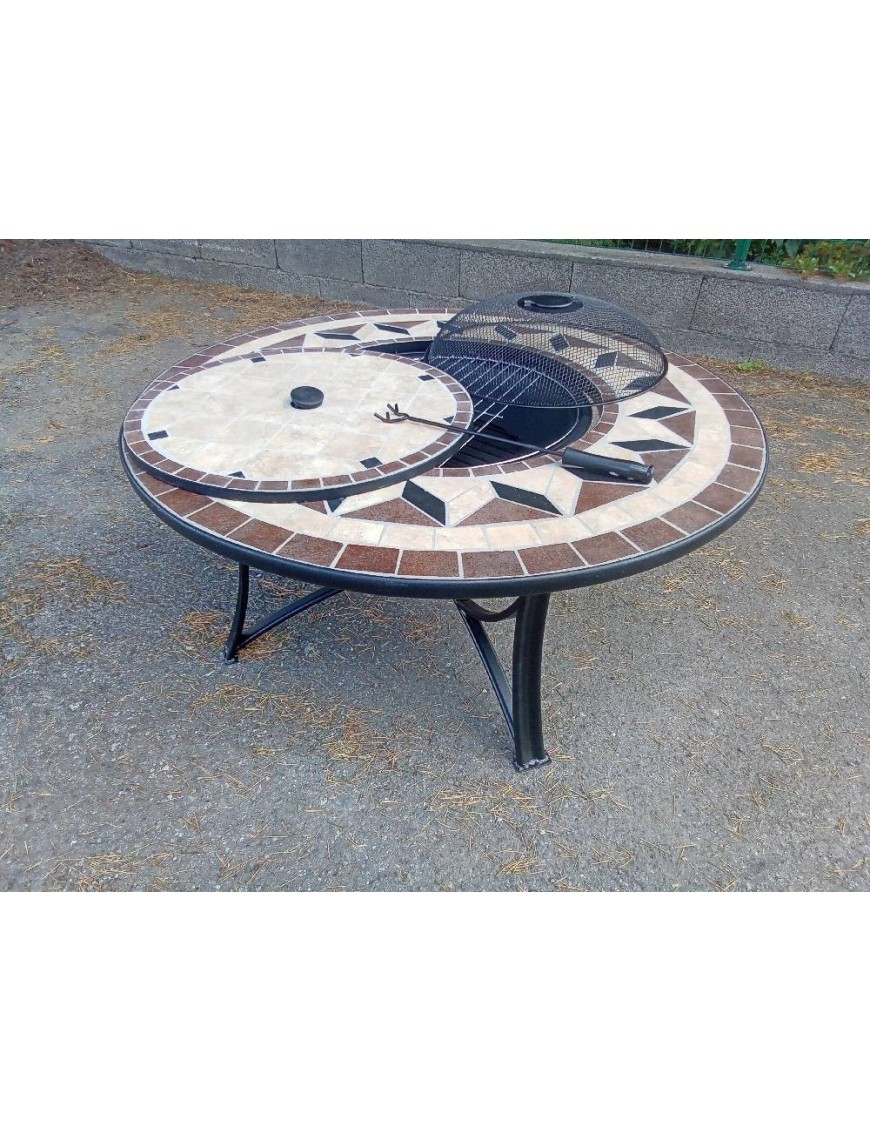 De jour, ce braséro ressemble à une table basse de jardin, soutenue par un piétement en acier et est surmontée d'un couvercle. Ce n'est que quand ce dernier est retiré qu'on découvre un récipient en creux, idéal pour brûler du bois ou du charbon. Grâce à cette conception, l'accessoire peut servir de table le jour et de braséro à l'arrivée de la pénombre. En plus de créer une ambiance chaleureuse, le braséro jardin peut tenir lieu de barbecue ou de seau à glaçons car il est livré avec deux grilles de cuisson et un tisonnier permettant de bien répartir les braises afin de faire vos grillades, d'un bac à glaçons en inox et d'une bâche de protection.