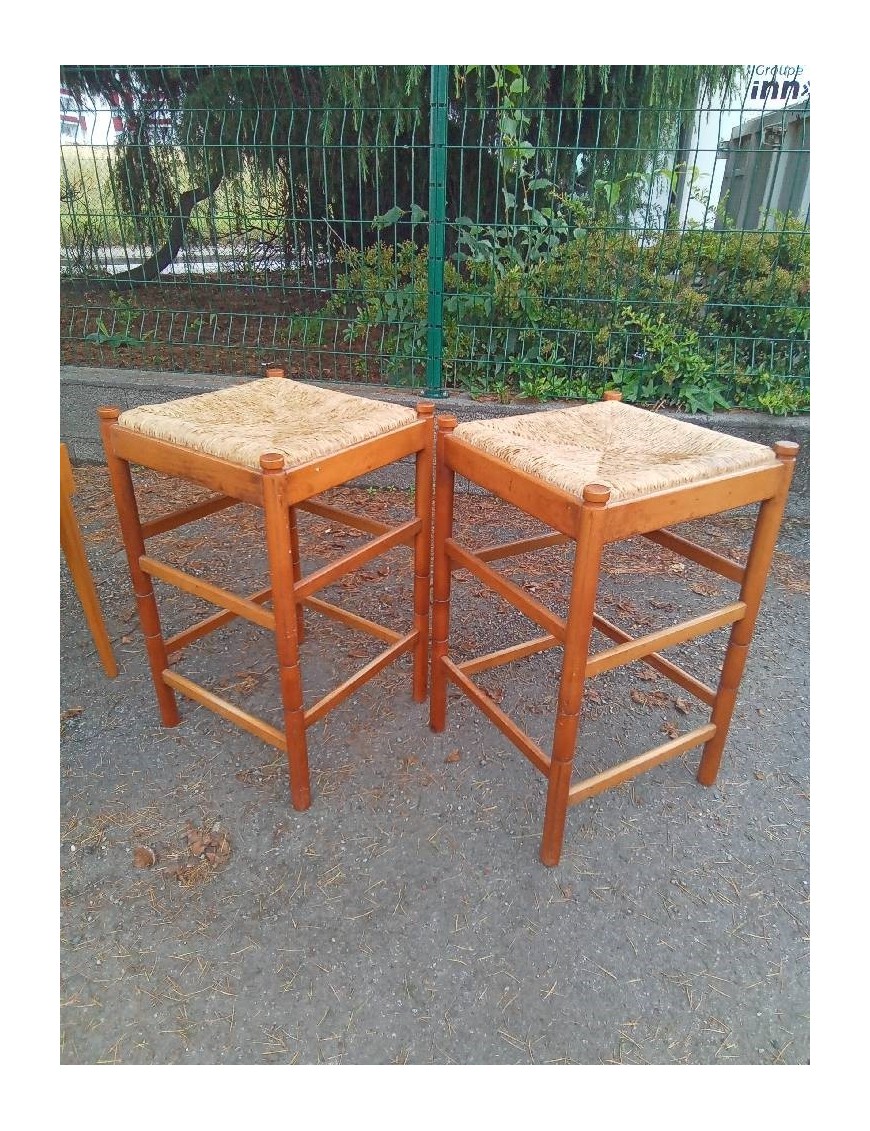PAIRE DE TABOURETS ASSISES PAILLÉES