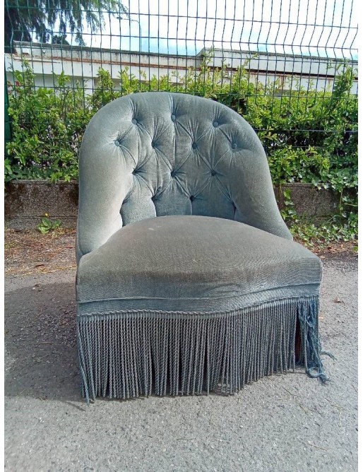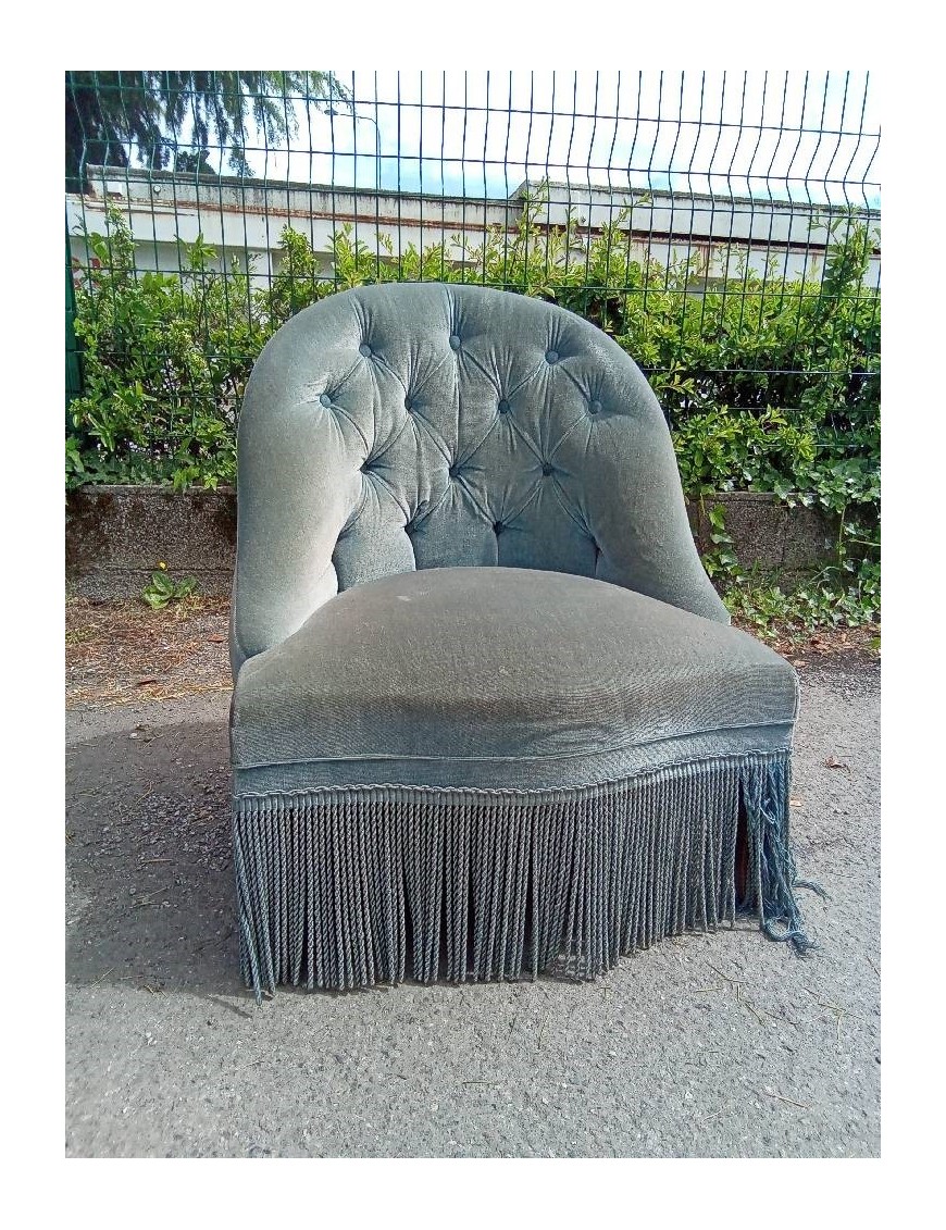 FAUTEUIL CRAPAUD VELOURS BLEU