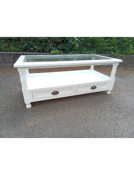TABLE BASSE 2T BLANC DESSUS VERRE