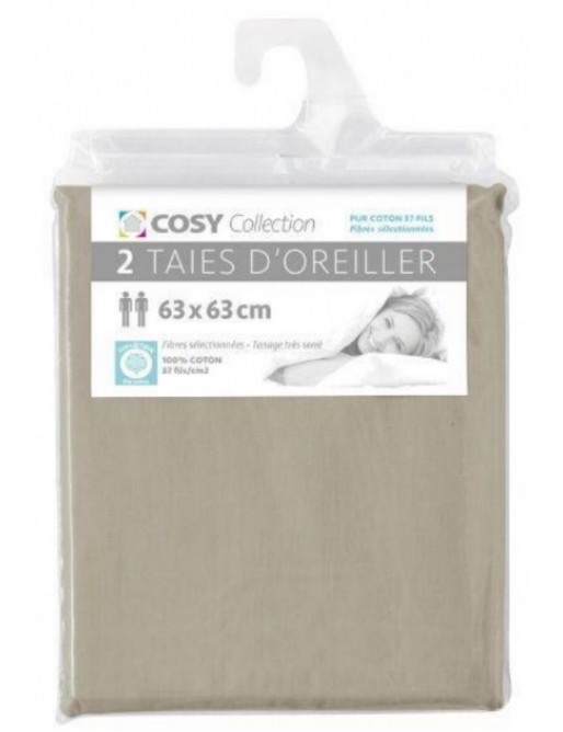 Paire de taies doreiller 63x63 100% coton FICELLE