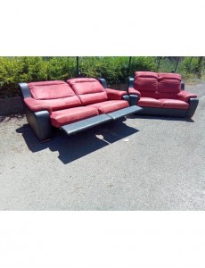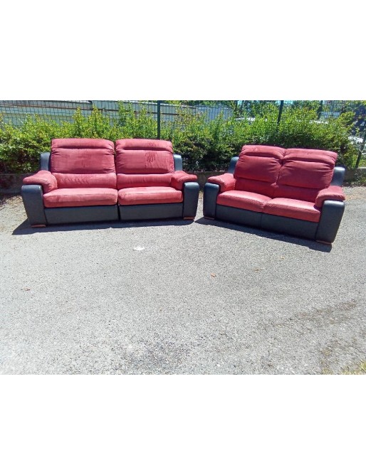 SALON 3 PLACES RELAX + 2 PLACES FIXES NOIR ET ROUGE