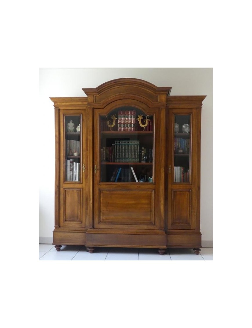 BIBLIOTHÈQUE 3 PORTES VITRÉES STYLE DIRECTOIRE