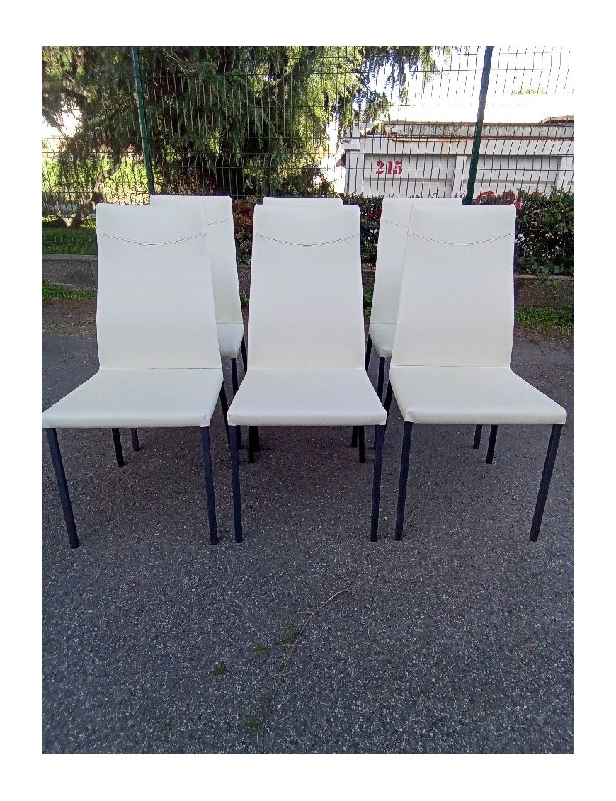 LOT DE 6 CHAISES CUIR BLANC