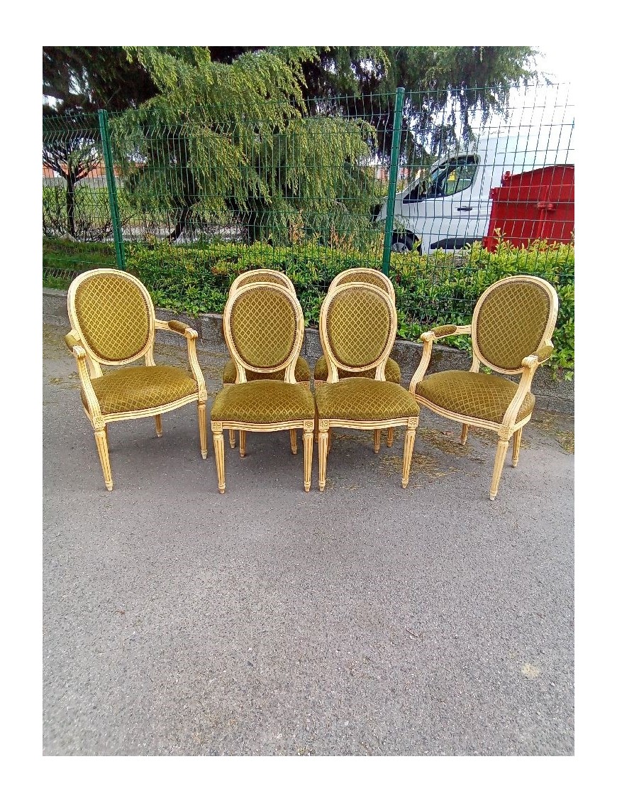 LOT DE 4 CHAISES + 2 FAUTEUILS STYLE LOUIS XVI