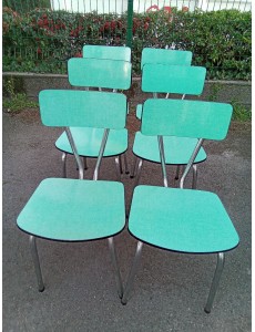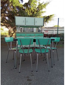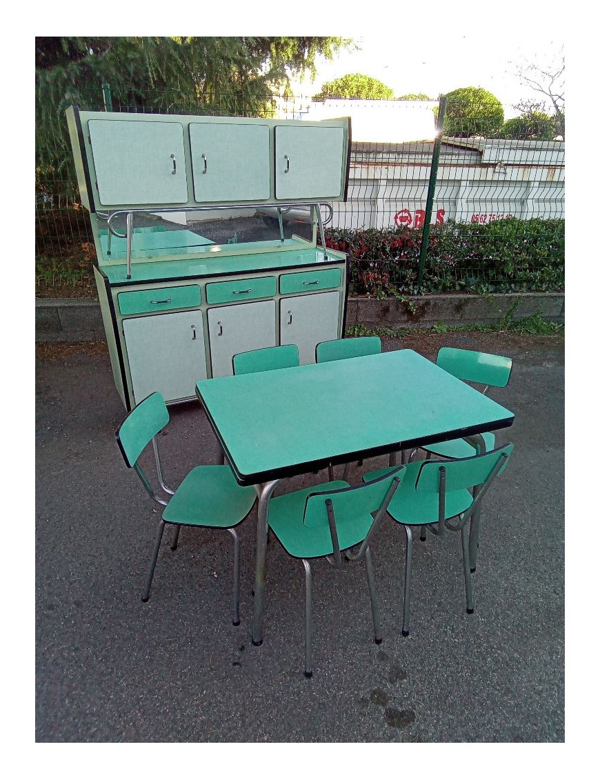 CUISINE FORMICA VERTE TABLE + 6 CHAISES + BUFFET 2 CORPS