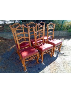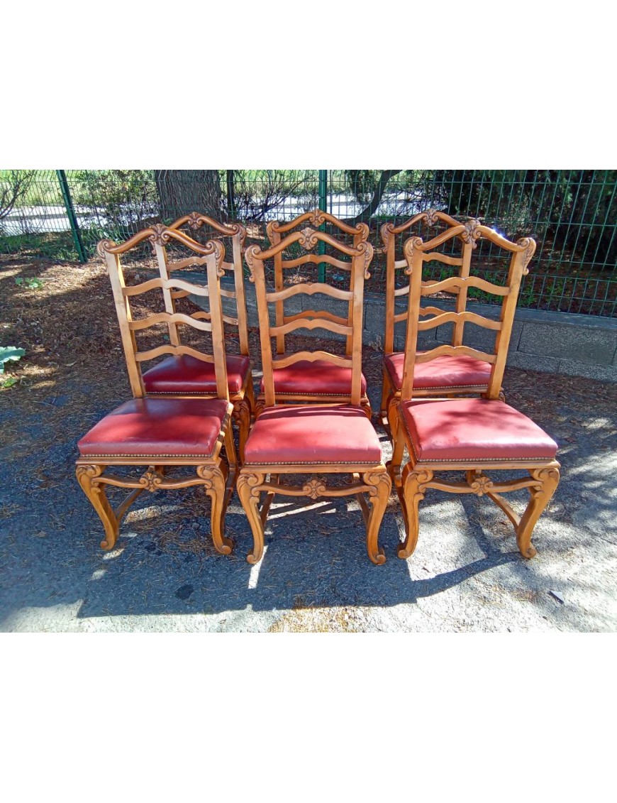 LOT DE 6 CHAISES STYLE LOUIS XV ASSISE ROUGE