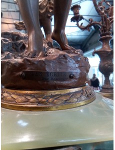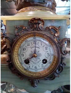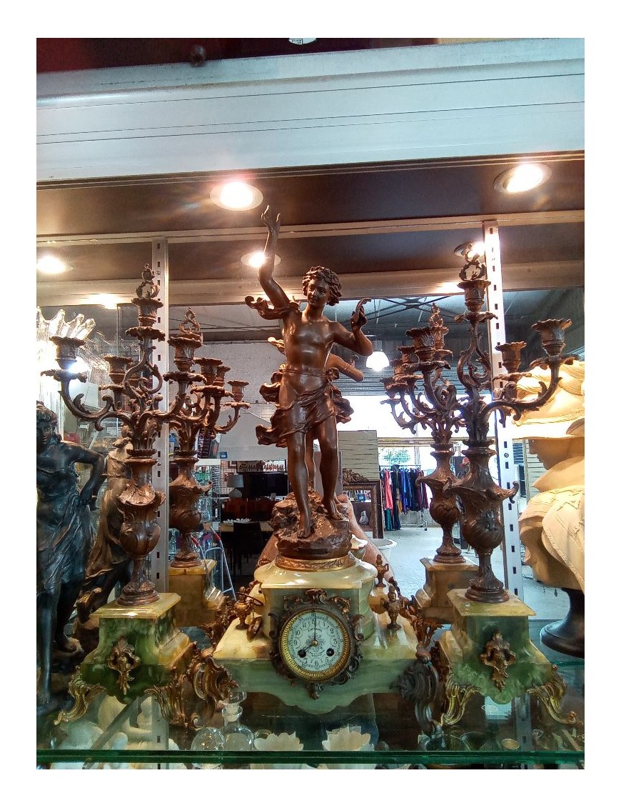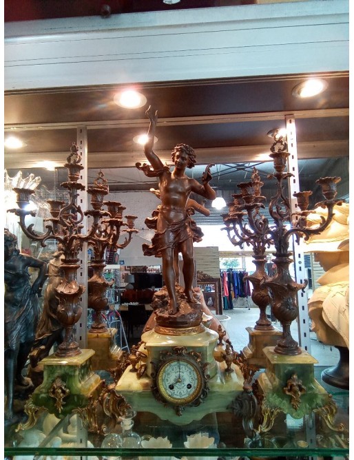 PENDULE MARBRE VERT RANCOULIET + PAIRE DE CHANDELLIER
